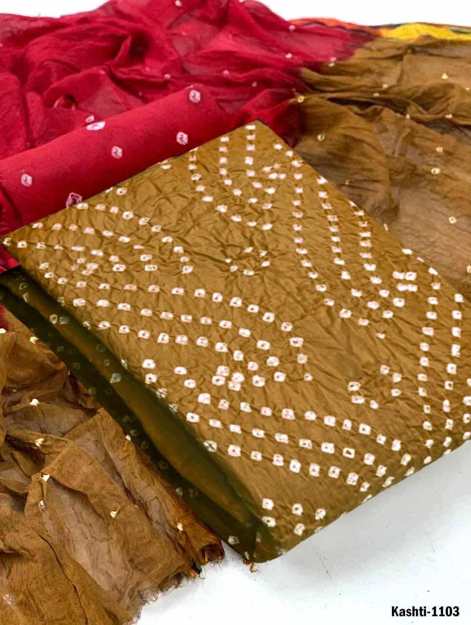 KT KASHTI Pure Satin Cotton Bandhni Dress Materail