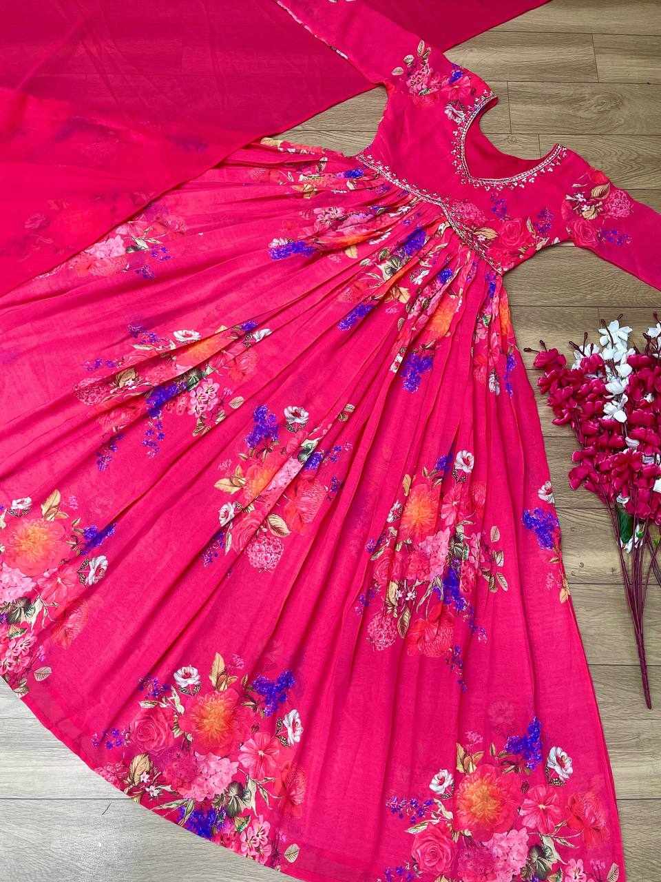 Work: Embroidery Thread Work & Floral Print
