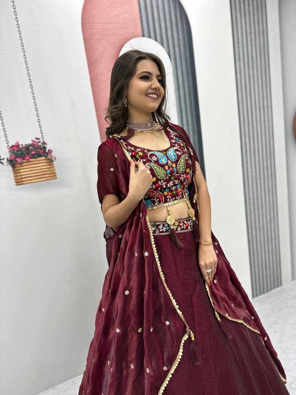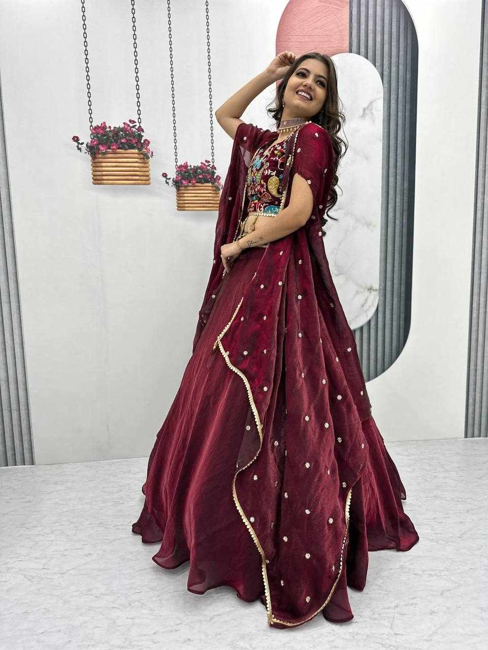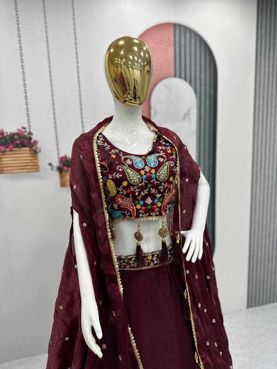 | Name : | PC 501 Marron Heavy Embroidery Thread & Sequence Work Lehenga |