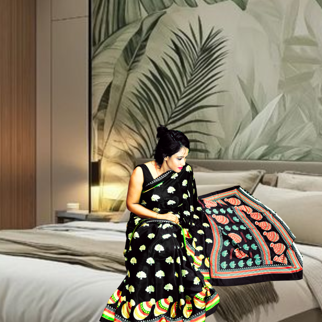 | Name : | S4S Turkey print black Pot Tree Saree |