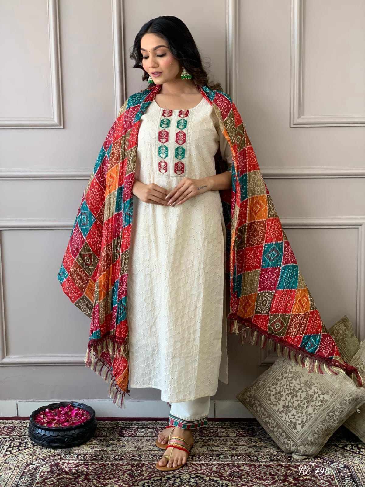 | Name : | SF 31 Schiffli chickan Cotton With full printed cotton silk duppata 359 |